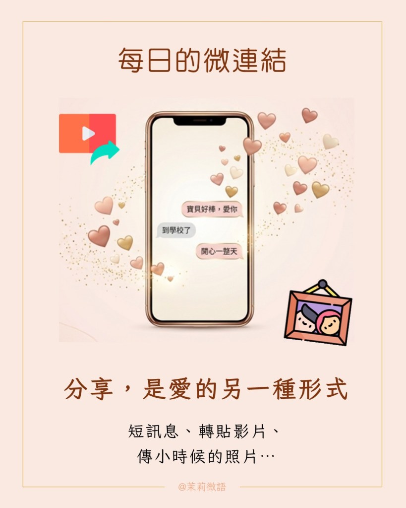 所以這些日常的問候,不須長篇大論或是苦口婆心,而是一種「微連結」,在日積月累下,每日像是往孩子的情感帳戶裡存入的一筆筆存款。
