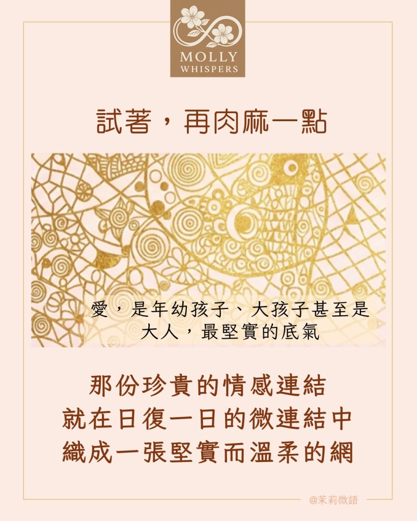 試著肉麻一點說愛,你會發現,那份珍貴的情感連結,就在日復一日的微連結中,不知不覺中織成一張堅實而溫柔的網。