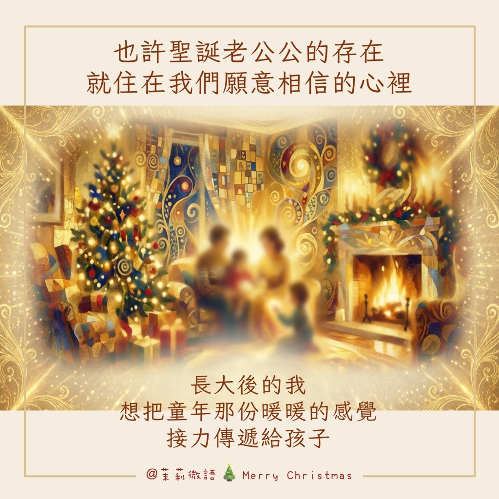 雖然孩子逐漸長大,難免會被破梗:「聖誕老人就是爸媽啦!」,我現在確實也扮演著這個角色。但說實話,在我內心深處,依然夢幻的相信這世界上真的有聖誕老公公,也許某一天,會奇蹟似的在天空中看到他駕著雪橇在奔走呢!