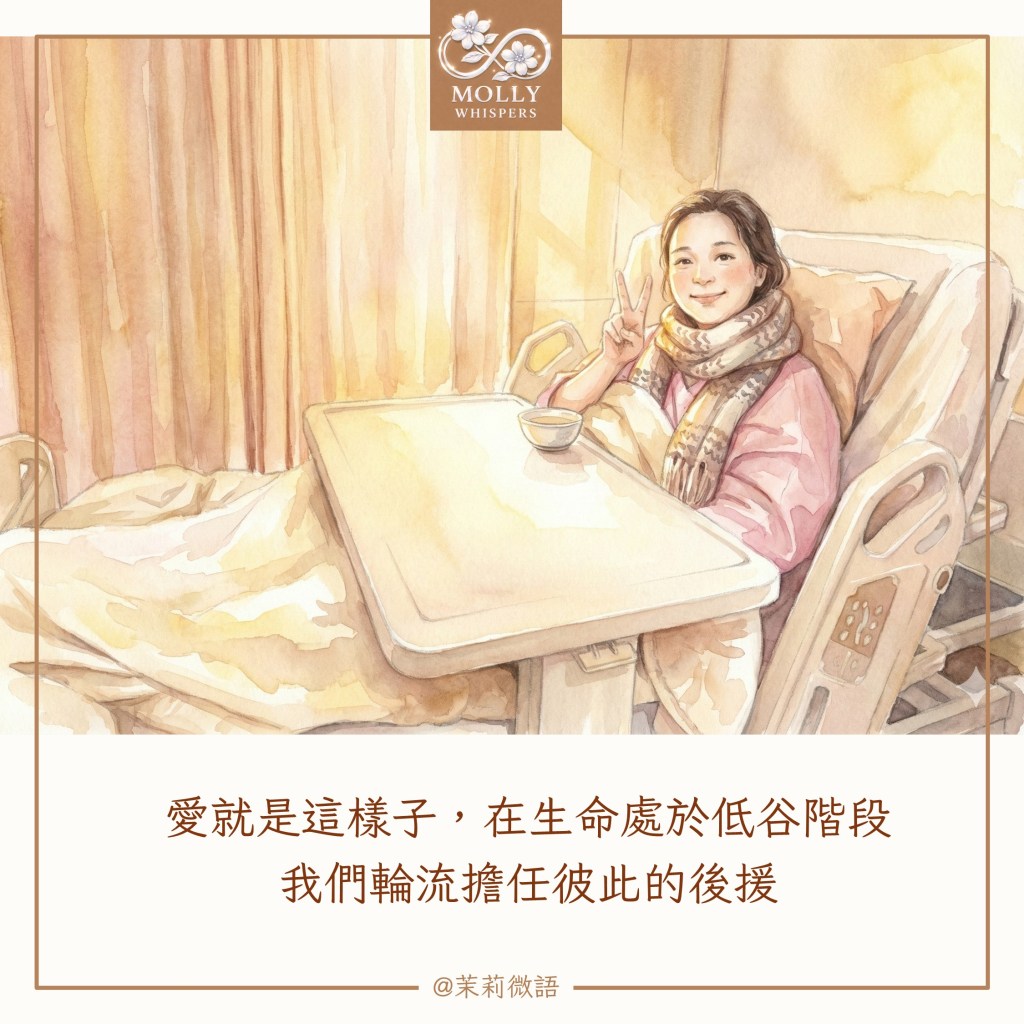 那時我正獨自面對標靶治療,隔壁床是一位動腸胃手術的阿嬤。
