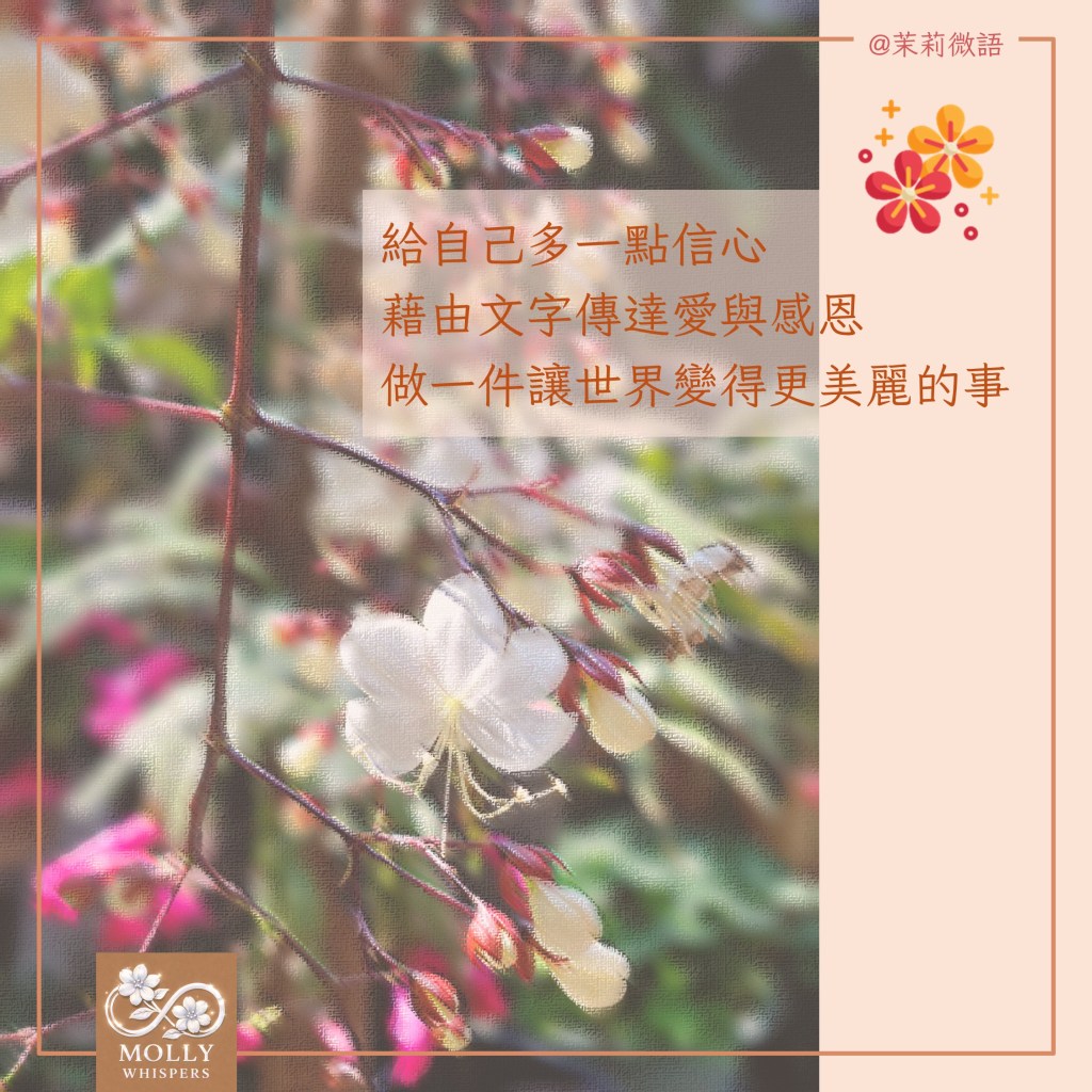 同時,我也向神明說,我現在需要的是對自己多一點信心,相信自己可以藉由文字,成為一個傳達愛與感恩的人,就像知名繪本「花婆婆」一樣,做一件讓世界變得更美麗的事🌸